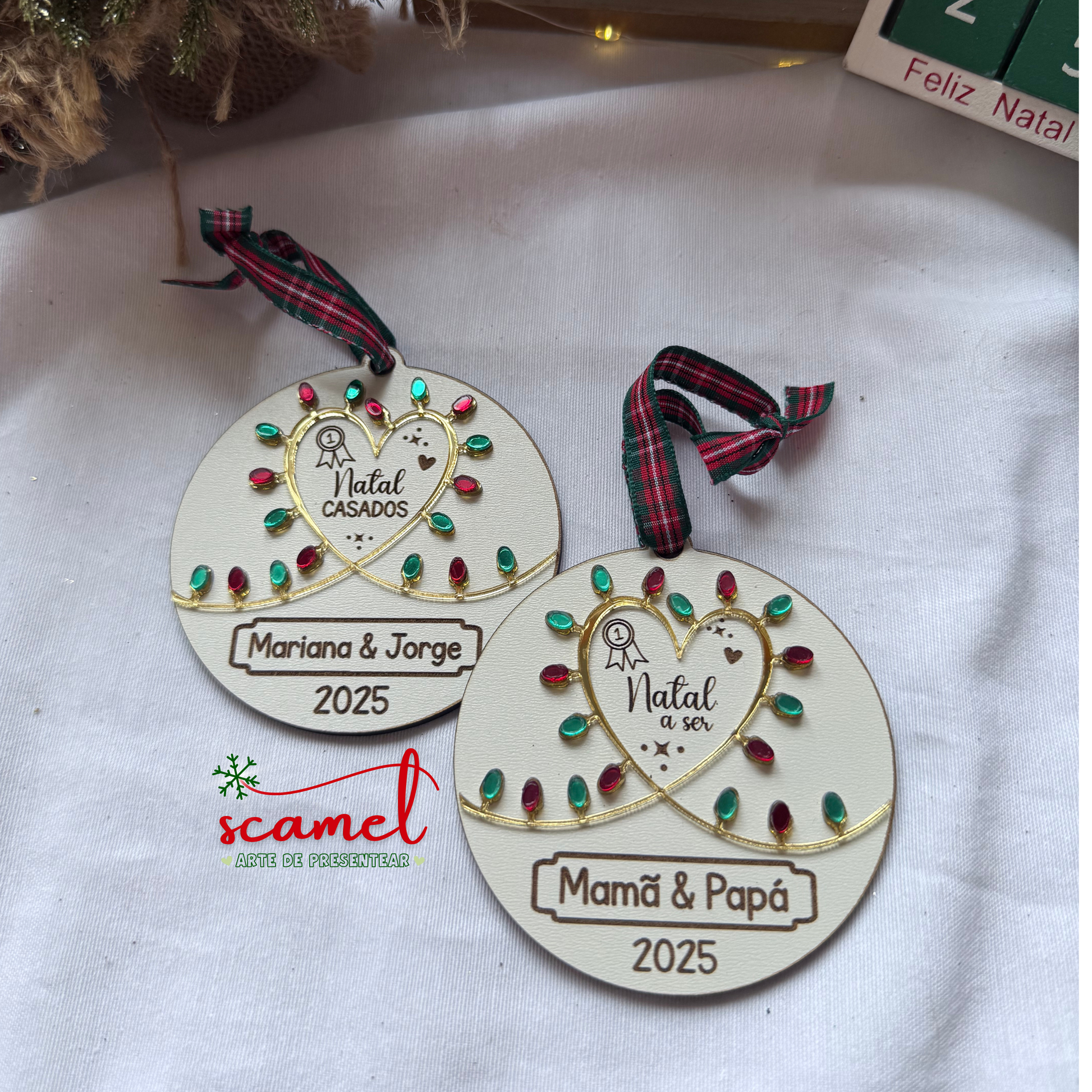 Este ornamento redondo, decorado com luzes de Natal verdes e vermelhas intercaladas, é o símbolo perfeito para celebrar um novo começo. Seja o primeiro Natal do bebé, o primeiro como casados, ou o primeiro como papá ou mamã, ele traz um toque original e cheio de detalhes para a tua árvore.